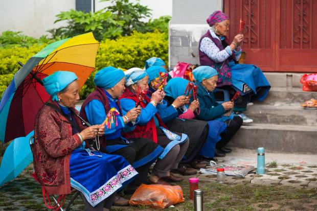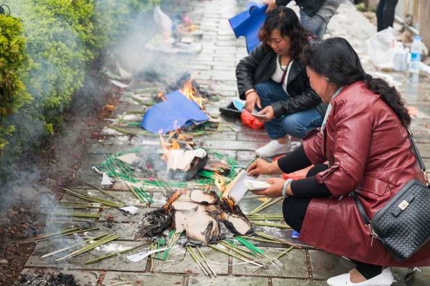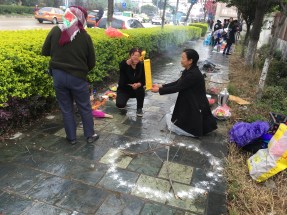 Общаться с бабушками на их безумном наречии не представлялось возможным, но по атрибутике это все напоминало вольную трактовку одного из “Трех великих загробных праздников” – Праздник отправки зимней одежды умершим Хань И Цзе 寒衣节. В центральном Китае этот праздник празднуется в начале зимы и уже не столь популярен как раньше. А здесь было очень активно и дело происходило весной. Может, это праздник отправки летней одежды.