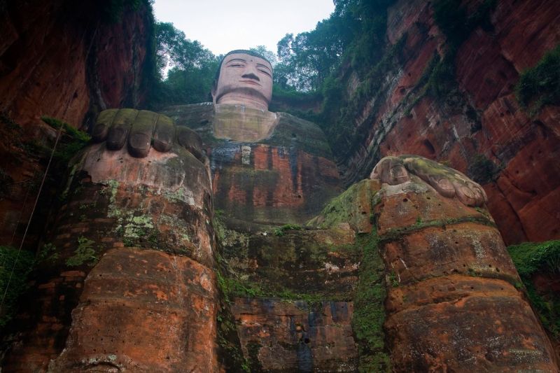 Лэшаньский Будда (Leshan Giant Buddha 大佛乐山 Leshan Da Fo) сидит в провинции Сычуань, у слияния рек Цинъи, Минь и Даду и глядит на воду в сторону горы Эмейшань. В Будде 71 метр (для сравнения Статуя Свободы всего 46м.) и он считается самым большим каменным произведением в мире.